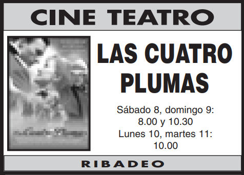 Os mércores era día de descanso para os dous cines, aínda que o Teatro pechaba tamén os xoves e venres.
